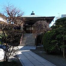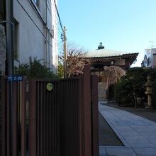 交通量の多い通りに面した寺院で、境内参道正面に小さなお堂が建っていた。