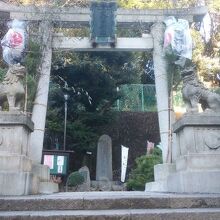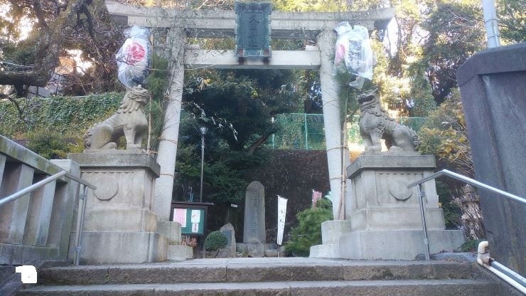 港区六本木にある神社。広いアメリカ大使館の敷地の裏手に小さく鎮座している。また、首都高速のある通りから一本入った通り沿いに入口がある。創建年代不詳。