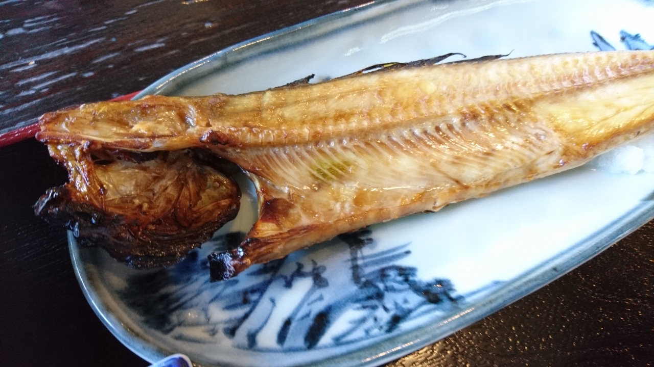 寿都町で人気のお店です。そもそも飲食店の数が少ないうえに、ご当地の特産をいただける店はわずかです。そのため開店前から並びました。お目当てはホッケです。寿都町は、ホッケが有名ですからね。と言ってもホッケは、北海道ならどこでも取れる魚です。どのように料理するかが、その店の腕の見せ所です。午前11時30分を少し回ったところで開店しました。私たちのほかに、すでの5~6人が並んでいます。お店に入ってお目当てのホッケの料理を探します。焼いたものの定食にフライ、そしてご当地グルメの「ホッケ飯」なるものもありました。しかし、ここは、シンプルに焼いたホッケの定食にしました。少し小ぶりのホッケですが、程よく脂がのったおいしいものでした。焼き方も良く、しっかりと皮までいただけました。小鉢もバランスが考えられていて満足いく定食でした。今度は、何にしようか楽しみです。