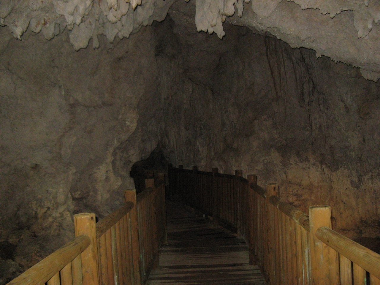 現地にある説明板(添付写真参照)に『戦前は鍾乳石や石筍が発達していたが、戦時中、防空陣地となり一部鍾乳石などは破壊された。テレビロケ地にもなったことがある。』とありました。