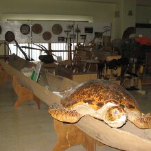 第一展示室には喜界馬の剥製や喜界島の人々の暮らしにまつわる道具を展示しています。第二展示室には、喜界島の出土品や昔の農具・漁具など町の重要な資料を展示しています。