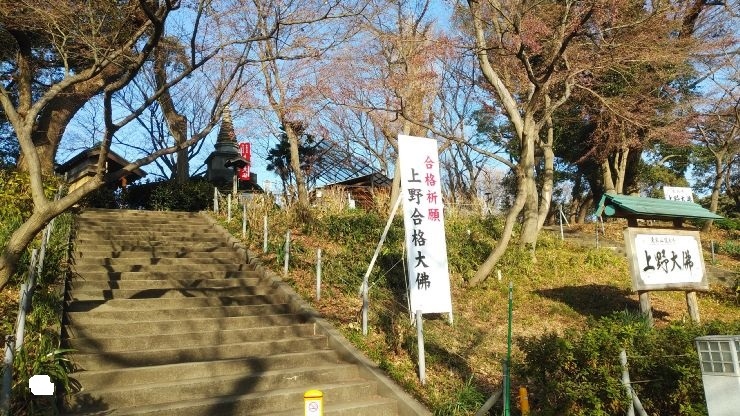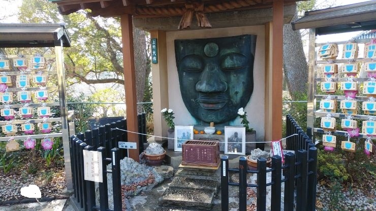 顔部分のみ残った大仏はこれ以上落ちないという意味で合格大仏として参拝客が祈願する。
