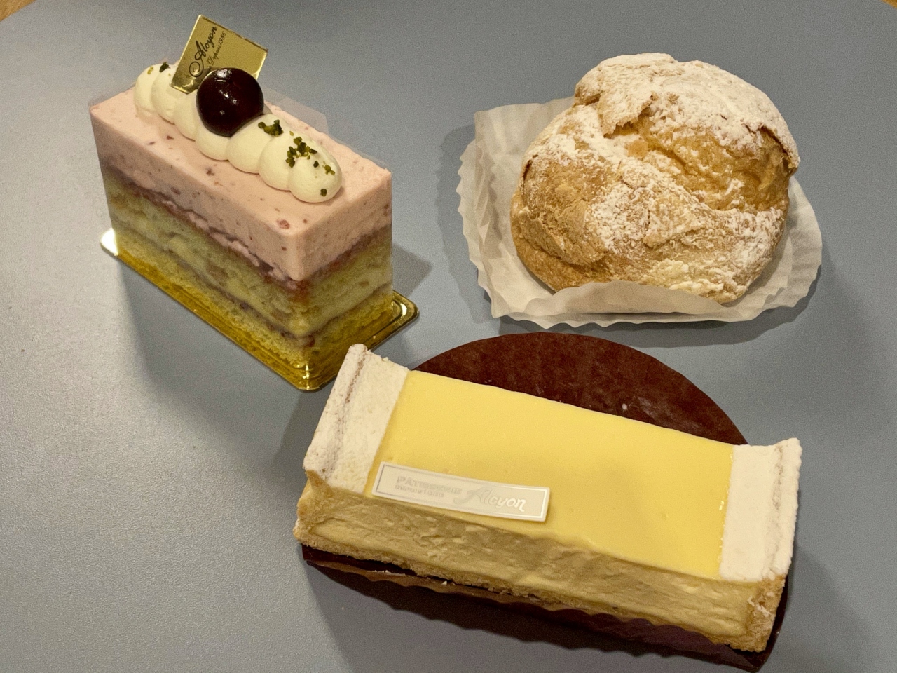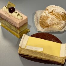 「シュークリーム」内部はカスタードクリームのみ。生クリーム好きなだけに少々ガッカリ。「ロワイヤルベークドチーズ」はクリームチーズの濃厚さもあって質量ともに結構ずっしりとしたボリュームではありますが、食感が軽やかなタルト地のおかげか意外にもサクサクといただけてしまいます。