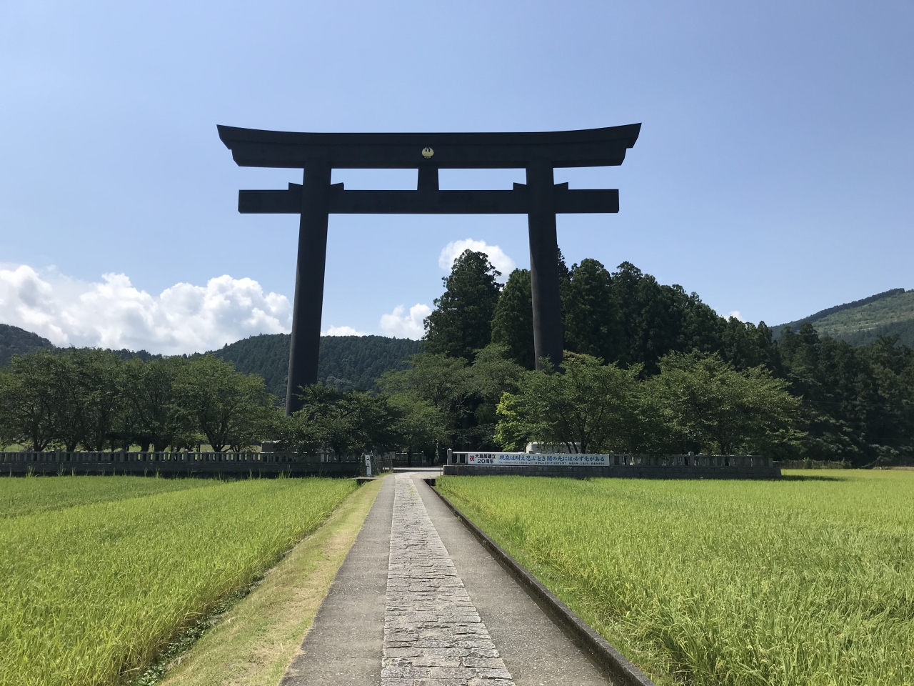徒歩数分で、田んぼの中に日本一と言われる大鳥居井が現れ、杉並木の参道をしばらく進むと、元本殿のあった場所に到着します。