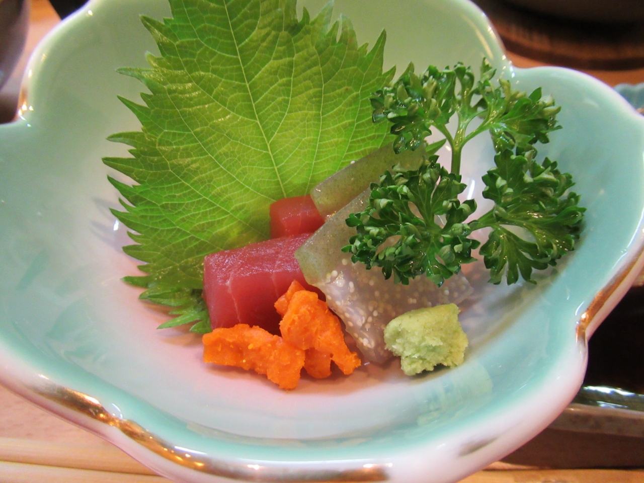 昼のコースは1200円と1800円の2種類で、1800円のコースにしました。内容は、湯葉のサラダ、お刺身、湯豆腐、揚げだし豆腐、天ぷら、デザート、それにご飯、味噌汁、お漬物です。