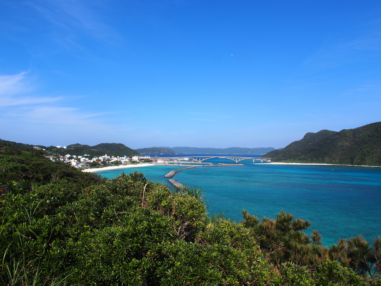 天城展望台からは前浜や、阿嘉港や、阿嘉大橋がみえます。