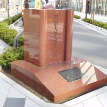 数寄屋橋交差点から日比谷公園方面へ、晴海通り沿いに歩いていると、ちょうど銀座ファイブの建物の横辺りにレンガ色の石碑がありました。以前、5-6年前にこの石碑を見た時は、植え込みの横だったと記憶していますが、周囲の歩道が綺麗に整備されたので、一見、郵便ポストのようにも見えるような気がしました。