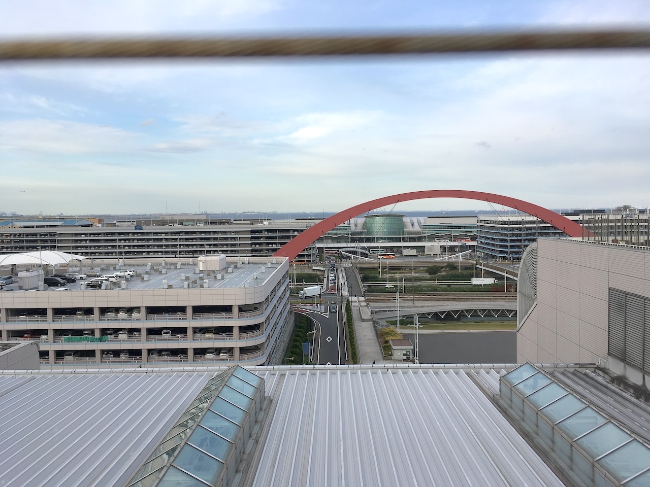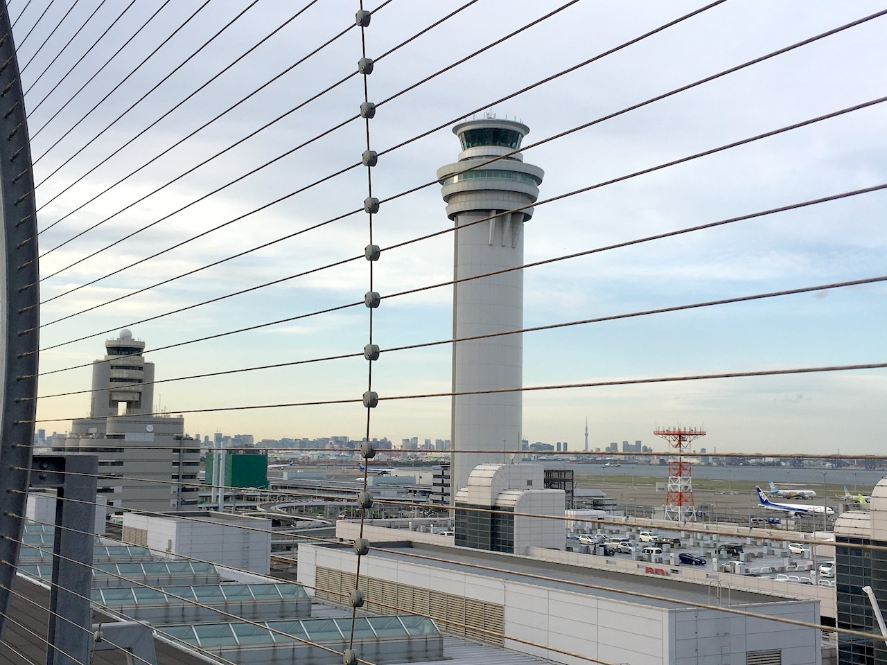 6Fの屋外に出ると南西向きのデッキがあり、遠くに第3ターミナルのビルが見えます。