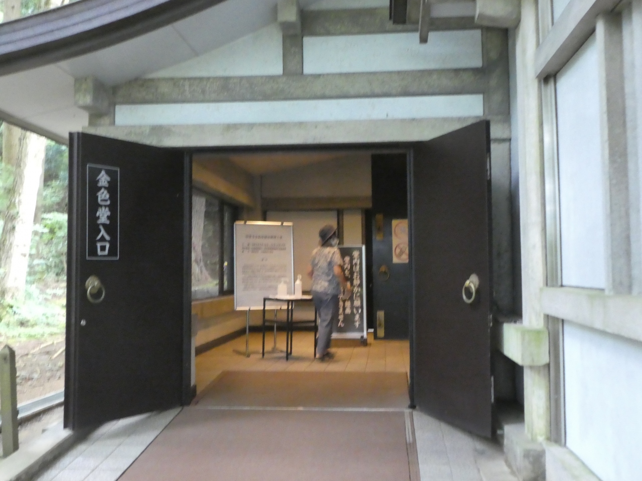 金堂はイメージしていたより小さなお堂でしたが、金色の美しさには感動しました。なだらかに続く月見坂も、創建当時とほぼ変わらないと聞き、雰囲気の良さに感動しました。