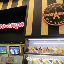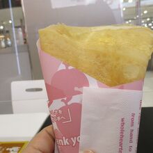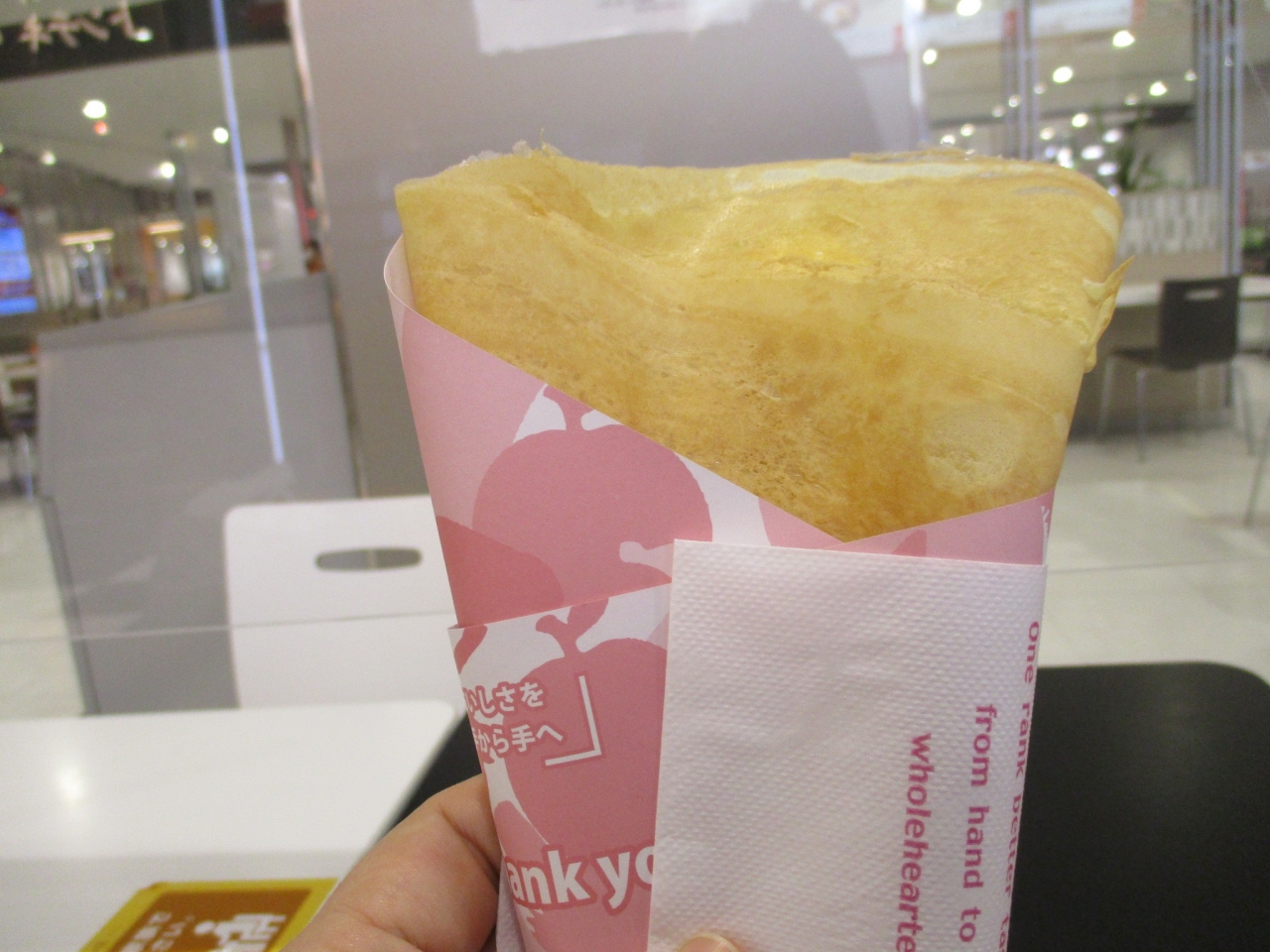 イオンモール茨木の1階、フードコートにあるクレープやソフトクリーム、ドリンクのお店です。ひさしぶりにクレープが食べたくなり、クリームチーズのクレープを注文しました。クレープはスイーツ系、総菜系などいろいろあります。おやつに軽めランチなどに重宝します。とてもおいしかったです。