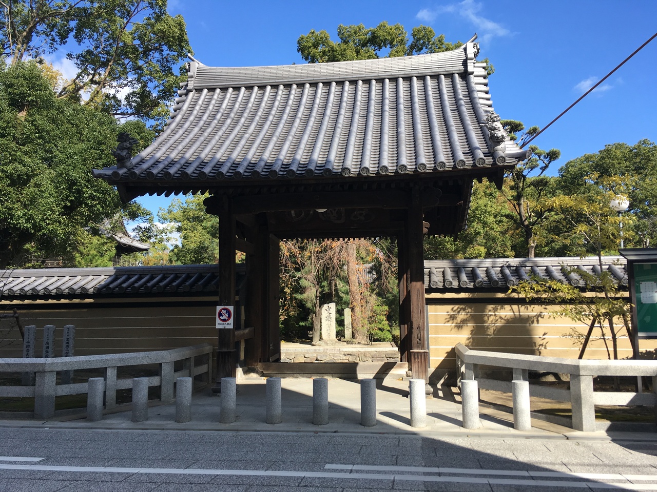 聖福寺は、地下鉄祇園駅から徒歩3分のところにある臨済宗妙心寺派の禅寺です。この寺院は、栄西禅師を開山として1195年に創建された日本で最初の禅寺です。総門は、聖福寺の入口です。この門は、1589年に黒田長政公が筑前国に入り福岡城を築城した為、名島城にあったものを移築されたものとのことです。四脚門、切妻造本瓦葺のものです。山号である「安國山」の額が掛かっています。小さな門ですが歴史あるものです。
