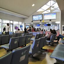 島自体が大きくはないので市街地からもそんなに遠くはないです。コンパクトな空港ですが、結構利用者がいるので結構込み合ってる印象でした。出発時はラウンジがないので、早めに来ても少し暇かも。店舗も似た感じのお店が多い印象でした。