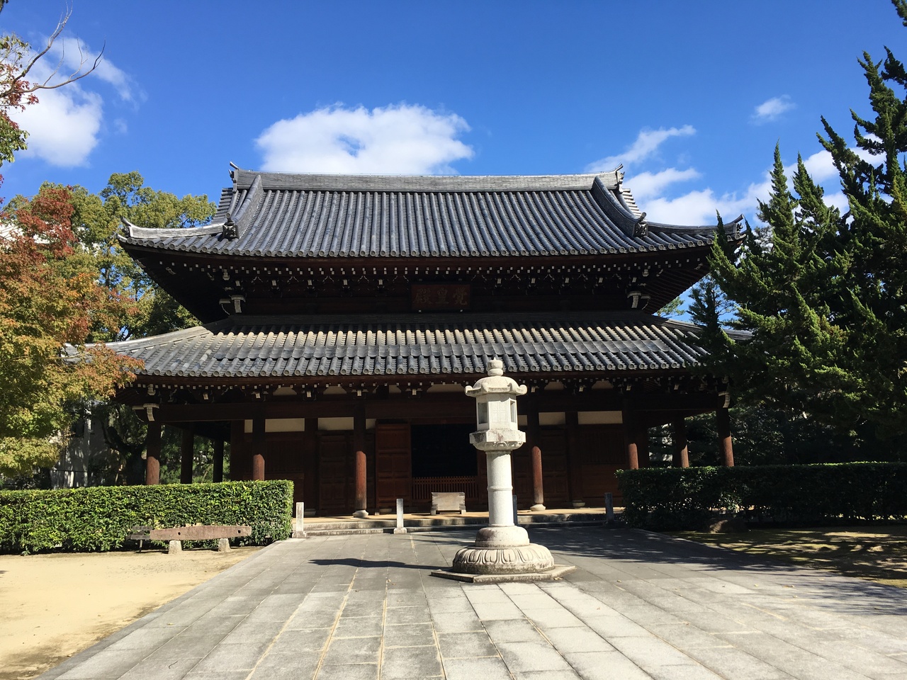 承天寺は、地下鉄祇園駅から徒歩5分くらいのところにある臨済宗東福寺派の大きな寺院です。境内は承天寺通りにより北東と南西に分かれています。山門、勅使門、仏殿は、南西側にあり、境内は自由に拝観できます。仏殿は1991年に創建750年記念事業として建造されたものです。お釈迦様及び脇仏が祀られていました。神社仏閣に興味がある方は参拝されては如何でしょうか。