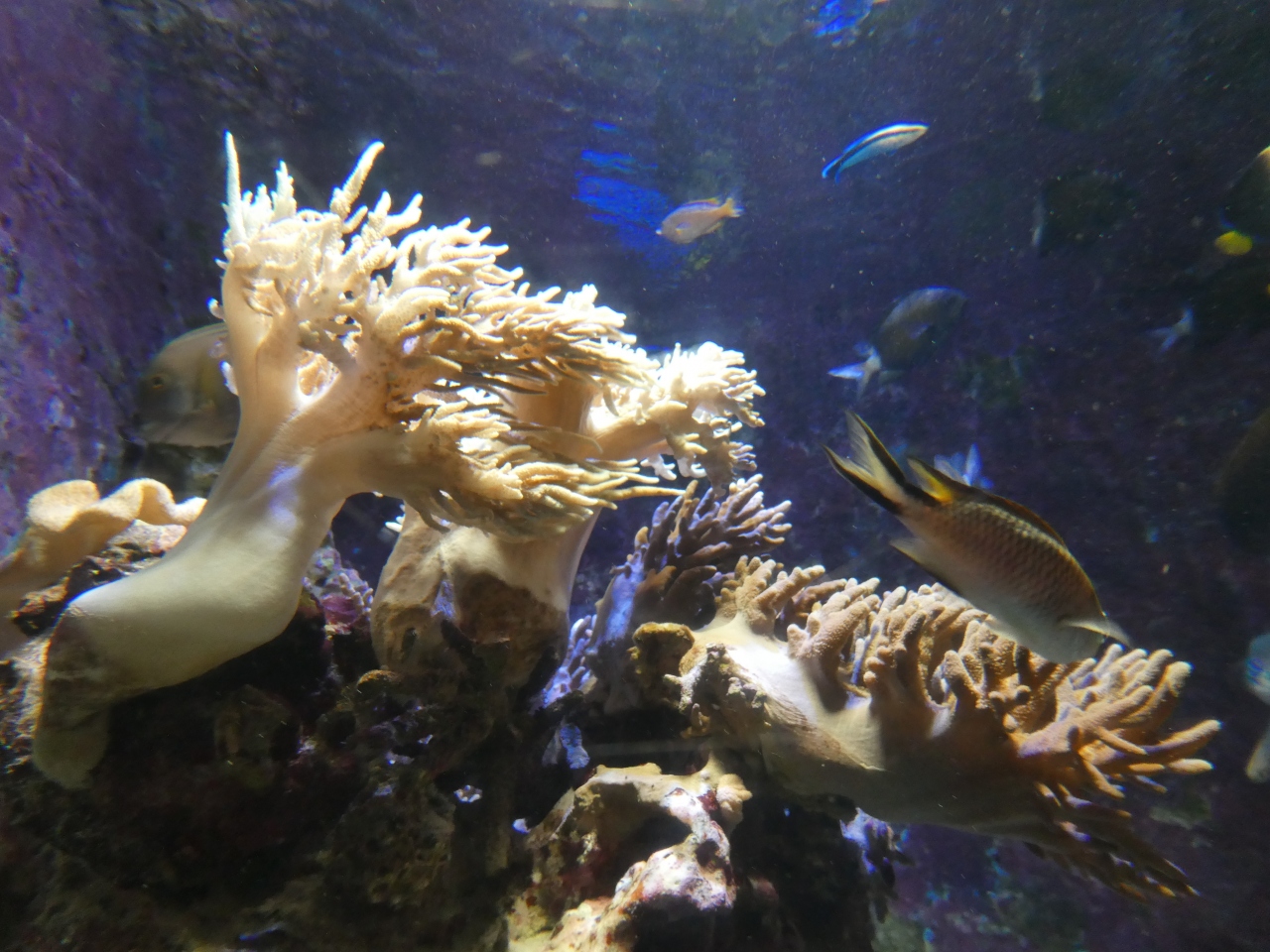 目玉はジンベイザメの居る水槽です。大きなジンベイザメが2匹いて圧巻でした。大人でも楽しめます。