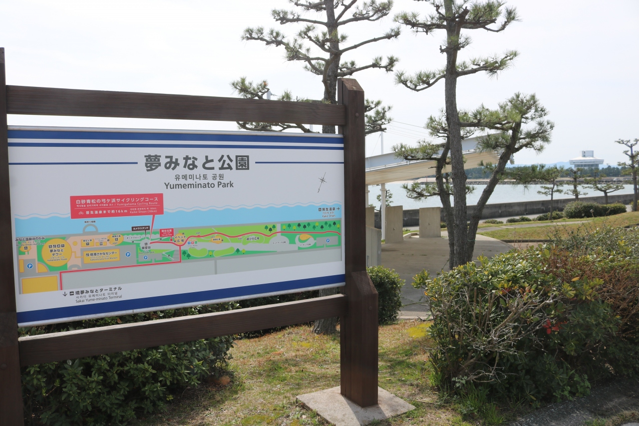 山陰みなと博覧会の会場跡地に整備された公園です。公園の橋にはタワーがあります。海の向こうには、雪をかぶった大山がとってもきれいに見ることができました。落ち着いたゆったりできる公園です。釣り客も多かったです。