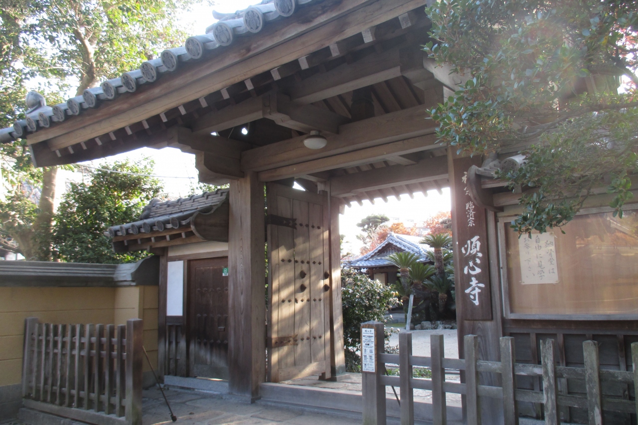 順心寺は、栄西禅師・禅宗発祥の地として国指定の史跡となっています。聖福寺の一画といって良い場所にありますが、臨済宗建仁寺派のお寺さんです。なお、聖福寺は臨済宗妙心寺派のお寺さんです。元々は聖福寺も臨済宗建仁寺派のお寺さんで、順心寺も順心庵といって、聖福寺の子院だったそうです。黒田長政の命で、聖福寺は建仁寺派から妙心寺派に転派させられた経緯があるそうで、順心寺は何故か転派を逃れたのでしょう。現在、聖福寺も日本初の禅宗寺院と名乗っていますが、禅宗が伝わった時は建仁寺派でしたから、建仁寺派の順心寺が正統となるのだと思います。