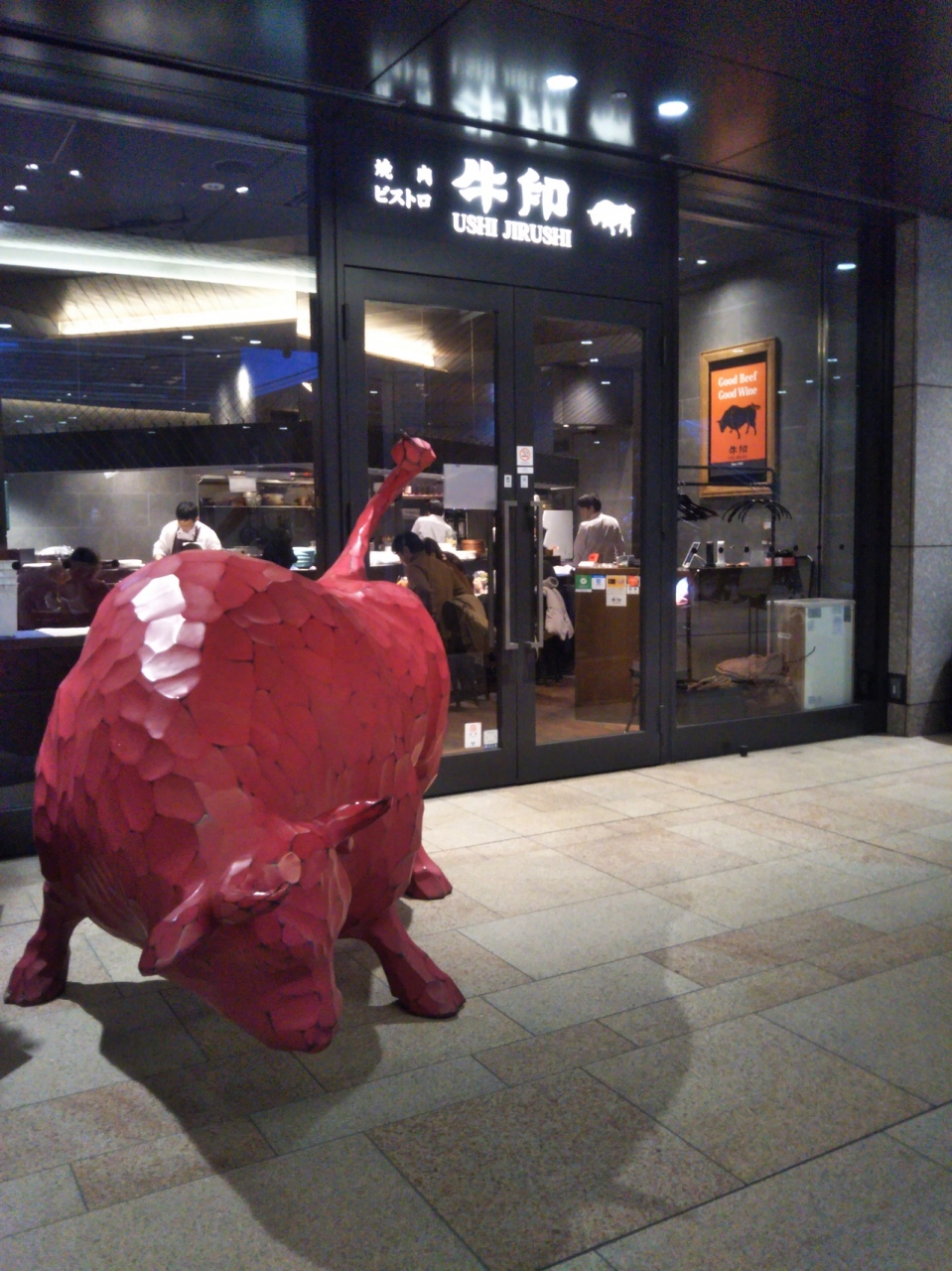 京橋エドグランのB1Fには、いろいろなレストランが出店しています。なかでも一際ピンク色の牛のオブジェが目立っているお店があります。「焼肉ビストロ 牛印 京橋エドグラン店」で、訪れるお客様も多い人気のお店です。満席状態となっていることが多いです。