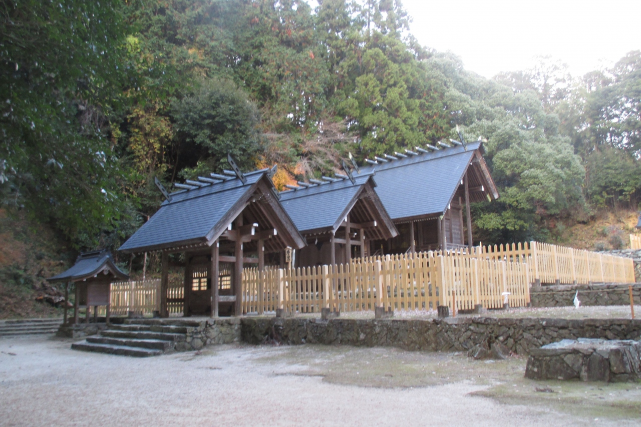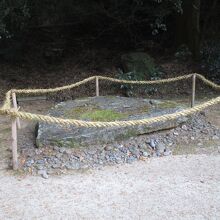山口大神宮は山口県庁の西方、高嶺(鴻ノ峰)の麓近くにありました。階段を昇って行くと、お社のあるところに出ますが、ほぼ四角い広場になっています。ここを四等分し、左手前に外宮があり、右後方の一段高いところに内宮がありました。次に、遷宮が行なわれると右手前に外宮、左後方に内宮という配置になるのだと思います。外宮の前に農作物の厄除け、豊作を祈願する籾置岩がありました。