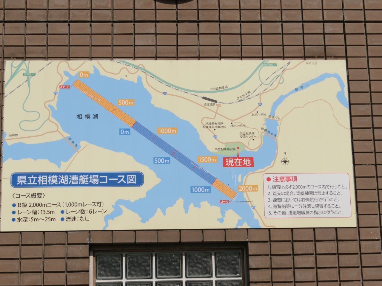 神奈川県立相模湖漕艇場という施設があり、多くの若者がカヌーの練習をしていました。