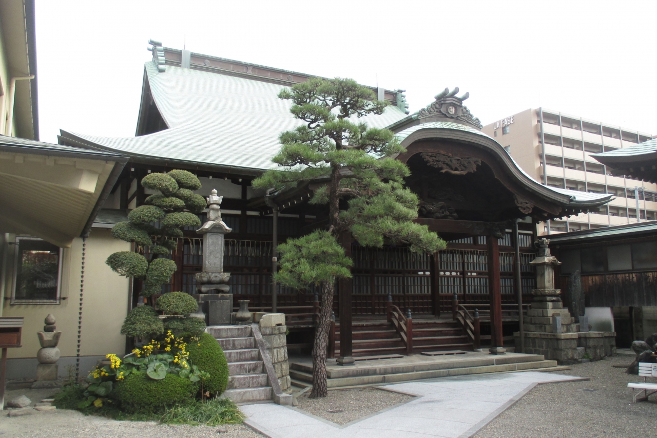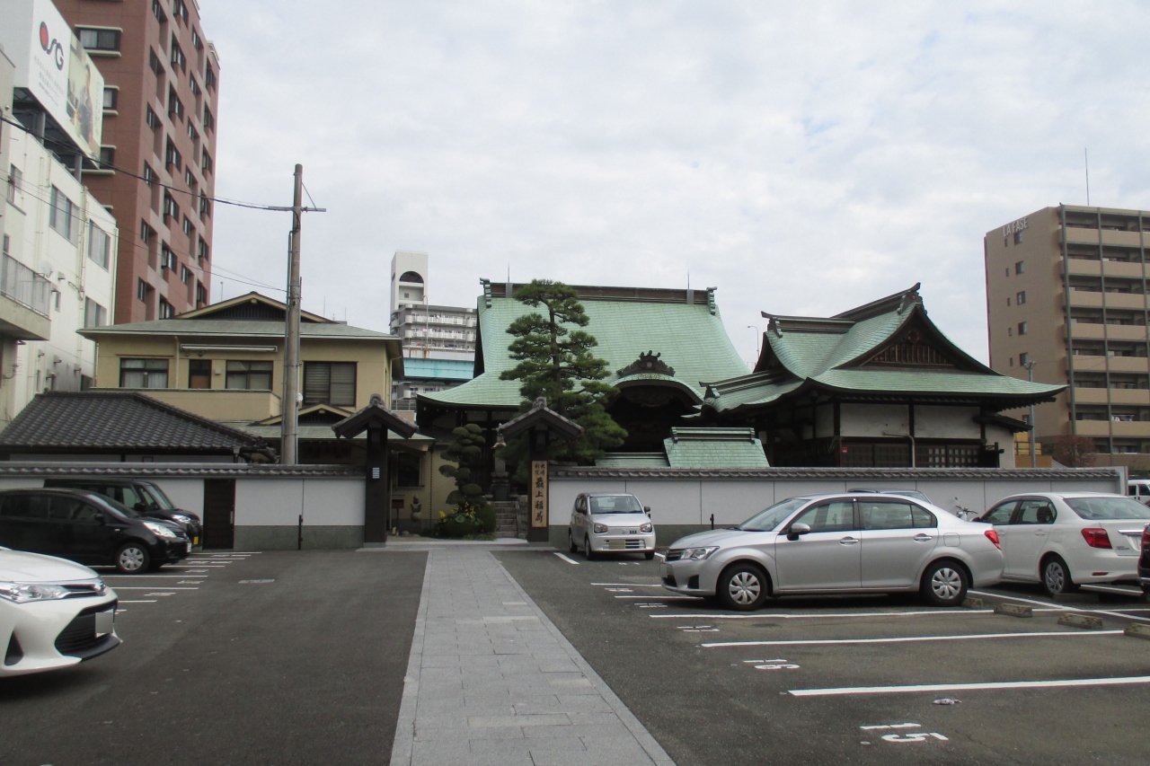 寺誌によると、1496年(明応5年)に創建で、開祖は(日蓮宗の)日因と記されているとのことです。元々は、聖福寺の塔頭寺の1つで本覚寺といったそうです。従って、臨済宗のお寺さんだったのですが、当時の住職の慢心から、日蓮宗のお坊さんにお寺の建屋をすっかり奪われてしまったということです。山号は西昌山で、日蓮宗のお寺さんです。なお、門柱に九州別院最上稲荷と掛かっていましたが、境内には一般的なお稲荷さんの鳥居はなく、よく分りませんでした。