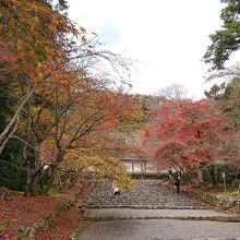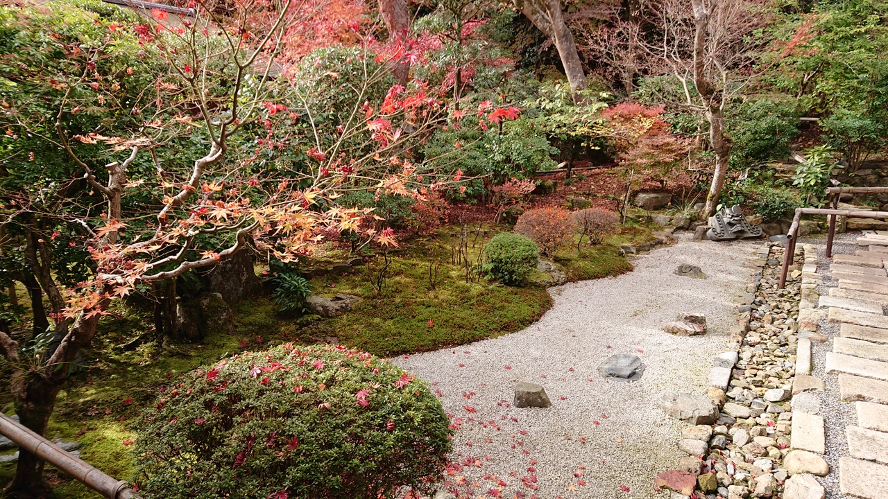 二尊院は、本尊の釈迦如来と阿弥陀如来の二如来像に由来します。素晴らしいのは、総門を抜けて拝観料を支払った後に広がる参道の馬場。紅葉は散り際でしたが、人もそれほど多くなく、風情がある素晴らしい雰囲気でした。