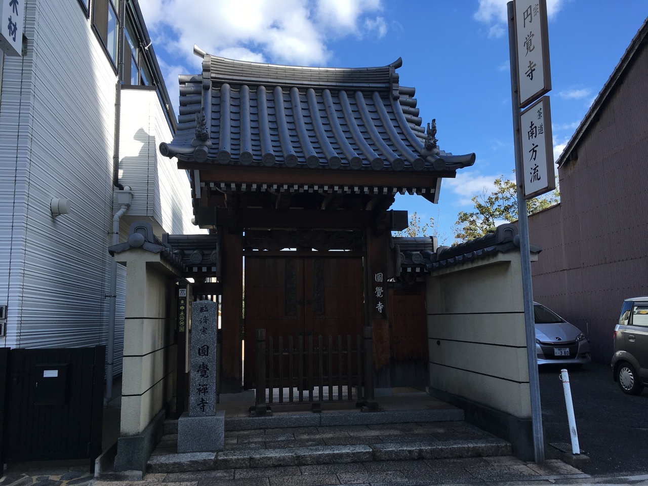 円覚寺は、地下鉄祇園駅から徒歩5分のところにある臨済宗妙心寺派の寺院です。聖福寺の塔頭寺院の1つです。道に面した小さな山門は閉まっていましたが、次の角を曲がった先に大きな山門があり、そこから境内に入ることができます。円覚寺は、1246年に蘭渓道隆(大覚禅師)が宋より大宰府へ来朝した際に創建された寺院です。1636年に現在の場所に移られています。この寺院は、千利休の奥義書「南方禄」が伝承されている、南方流の茶道と禅の道場とのことです。