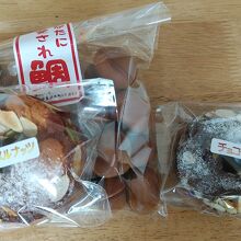 甘い香りの漂う店内には袋入りのカステラ、シフォンケーキ、焼きドーナツ等が並んでいます。