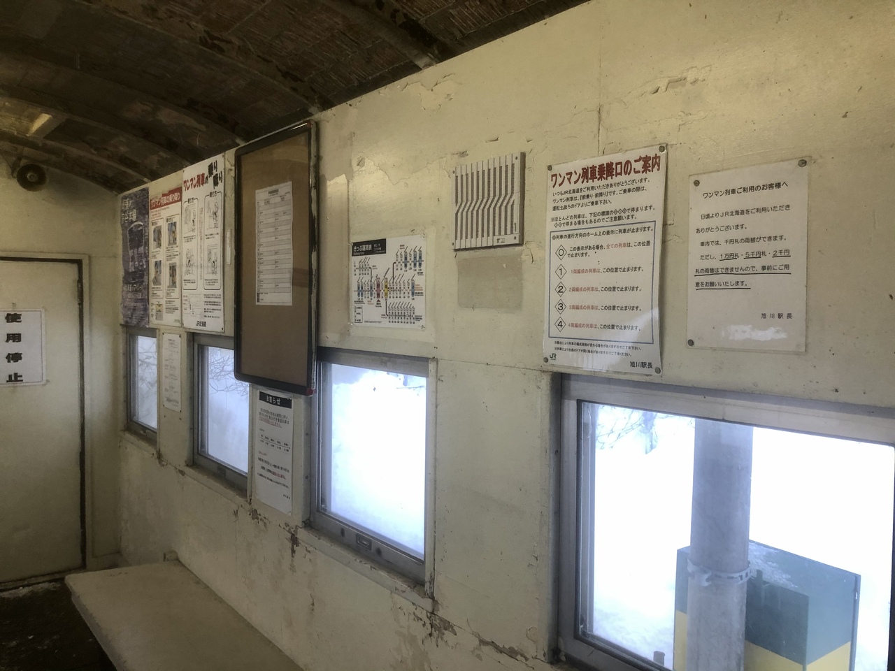 旭川に出掛けたので寄ってみましたが、往路、復路で丁度良い時間がなく概ね90分程無人駅で過ごすことになります。それではあまりにも大変なので3分の滞在で済む時間を狙いました。