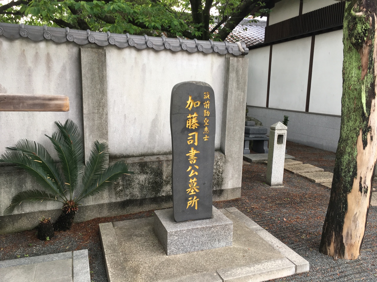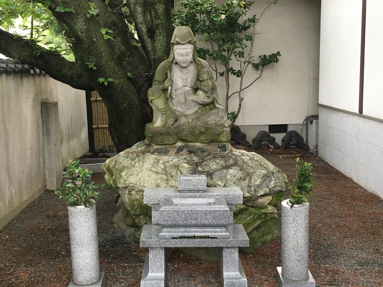 節信院は地下鉄祇園駅から徒歩5分くらいのところにある臨済宗妙心寺派の寺院です。聖福寺の塔頭寺院で、同寺院の南側にあります。綺麗な整えられた石庭がある寺院です。境内には、子供を抱いた観音様の坐像がありました。この寺院は、福岡藩の倒幕派の中止的な立場であった家老加藤司書の菩提寺です。境内に筑前勤皇志士加藤司書墓所の自然石の石碑がありました。