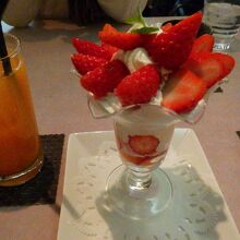「いちごパフェ」はいちごといちごシャーベットといちごアイスが盛られていました