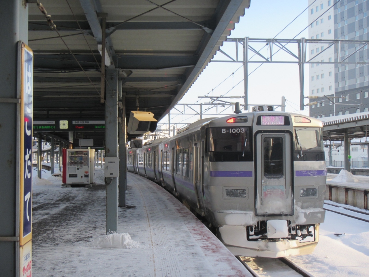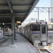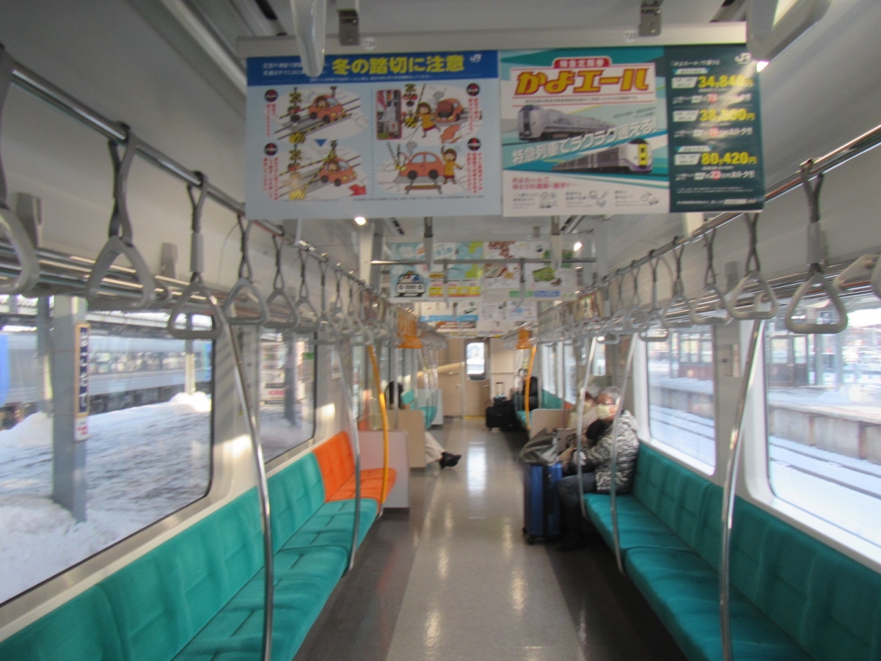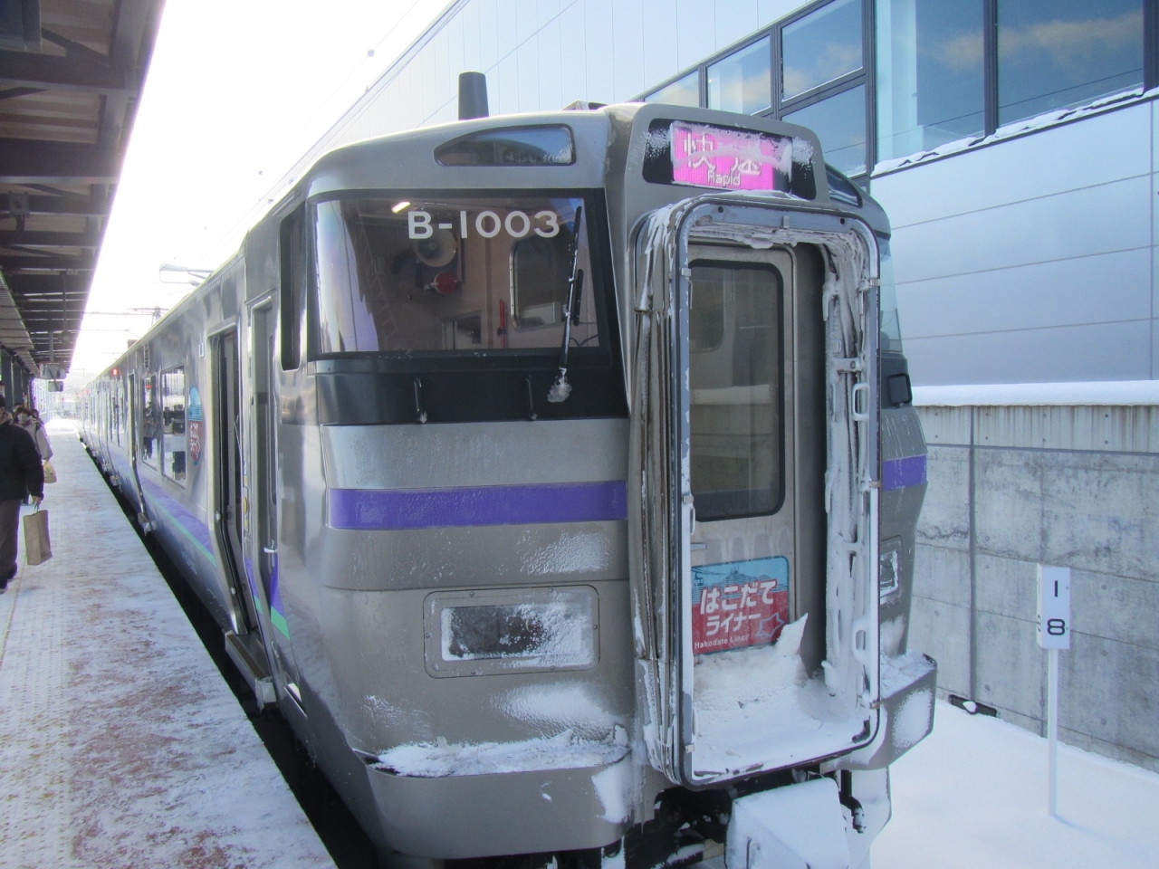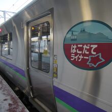 函館駅方面、新函館北斗駅方面、どちらに向かうにも先頭車両に乗ると、出入口に近くて良いです。