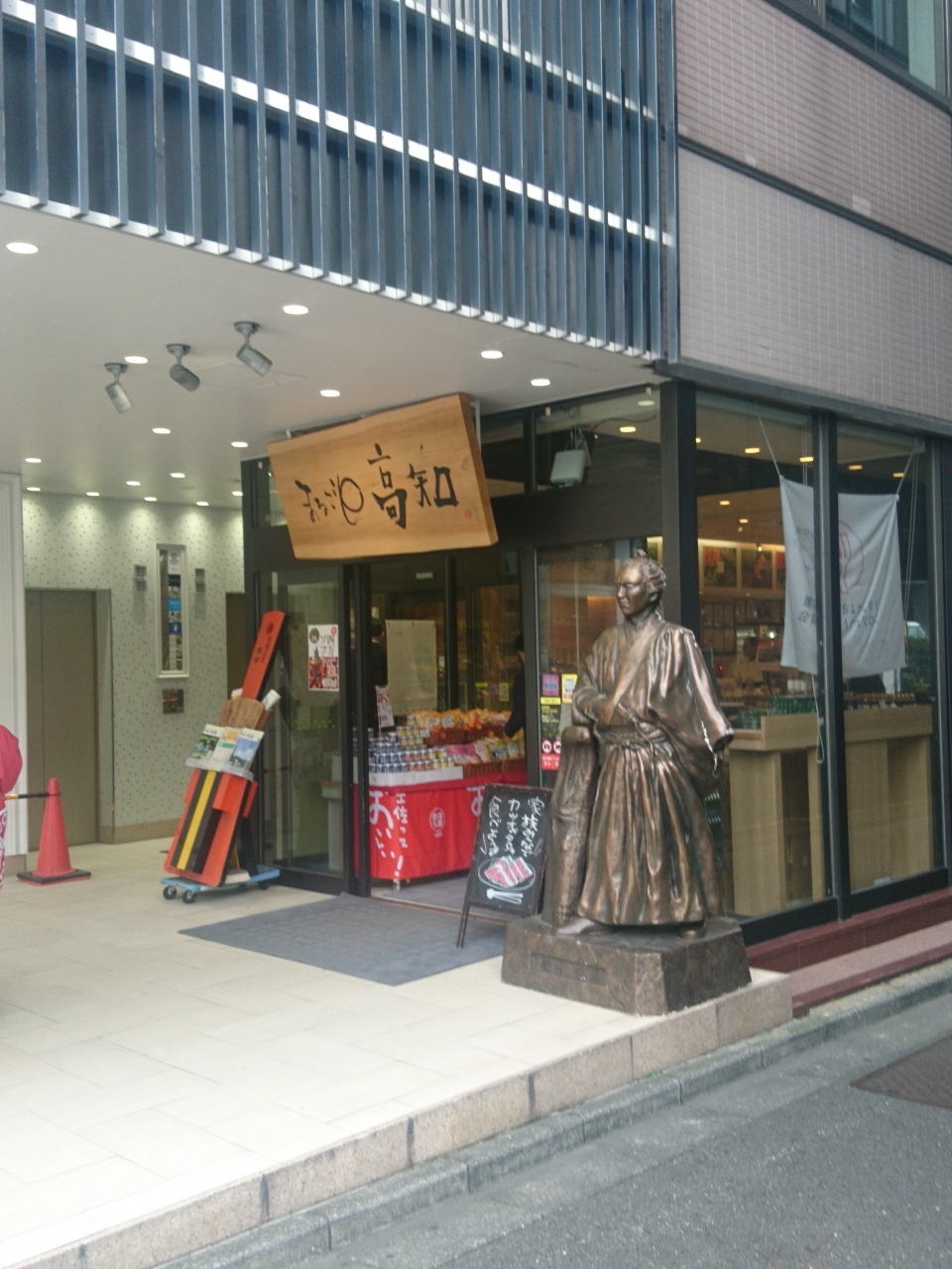 銀座1丁目にある高知県のアンテナショップまるごと高知の地下にある郷土料理と地酒の店。入口には地元土佐の英雄坂本龍馬の像が飾ってあるのですぐわかる。土佐は酔鯨、船中八策などの名酒が多い土地柄。それの肴はかつおのたたきは欠かせない。