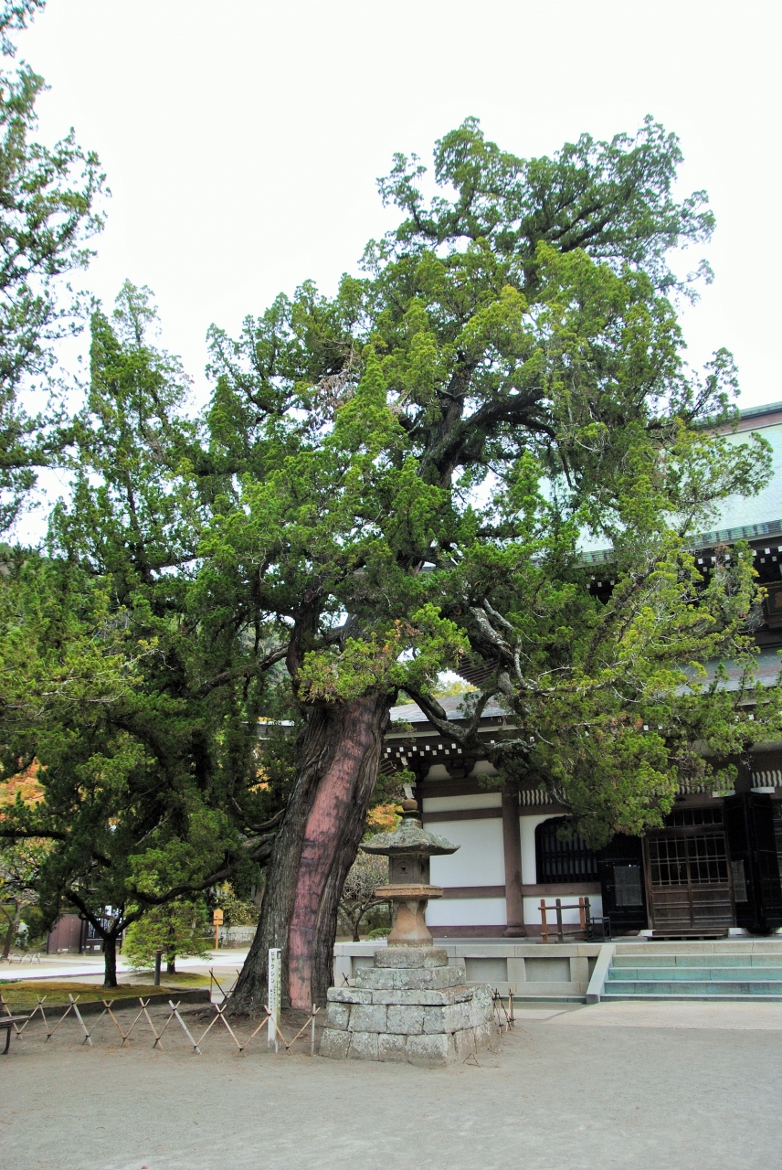 仏殿前のビャクシンの古木は市の天然記念物です。