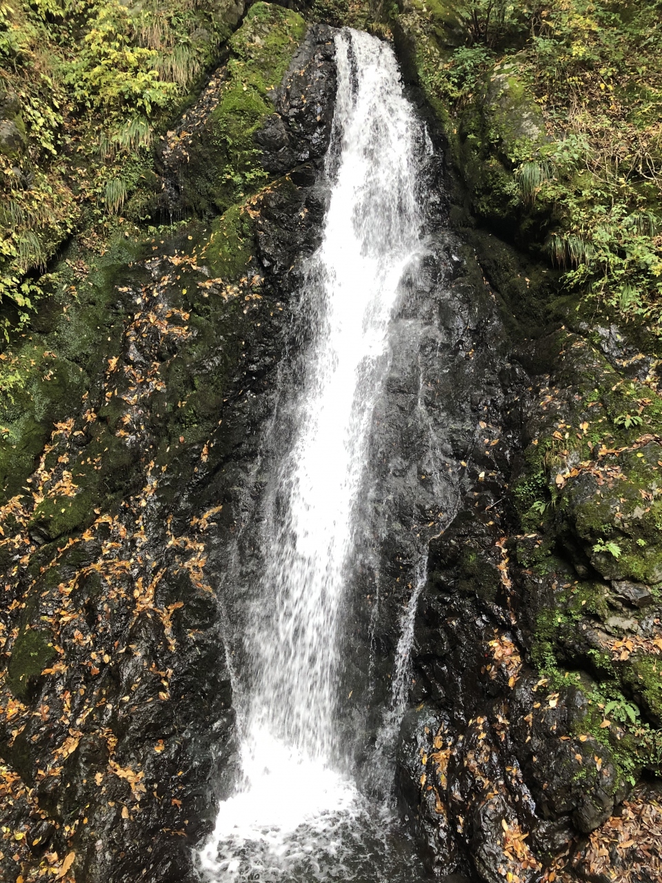 駐車場から天滝まで行く山道沿いにある滝のひとつで、この滝まできたら天滝までもうすぐです。赤い渡橋がある場所です。参道を進むと、どんどん滝の落差が高くなってくるので、テンションがあがります。この滝からの登坂が結構ハードでした。