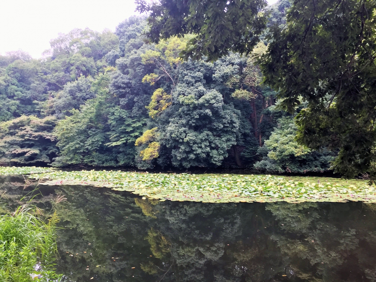 明治神宮の本殿群の南に広がる森一帯が神宮御苑として整備され有料ですが散策することができます。二之鳥居近くに入口があります。その神宮御苑の南側に大きな池が広がっています。これが南池です。「なんち」と呼ぶそうです。