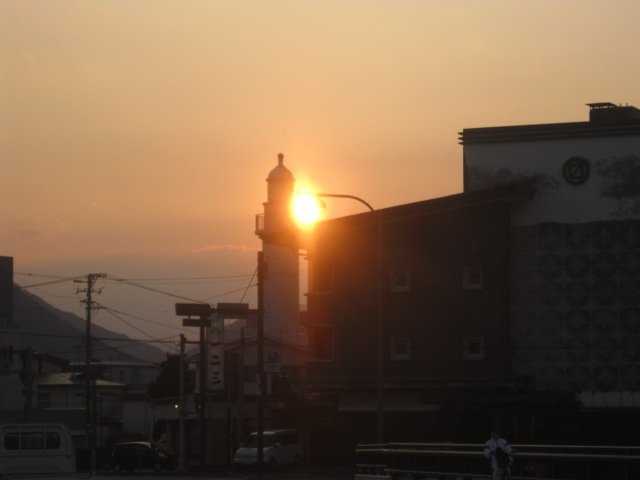 私は、東萩駅から宿に向かう際、往復で萩橋を渡りましたが、その際に眺めた朝夕の松本川の景観が素晴らしかったです。夕刻には、萩橋の東萩駅とは対岸側に見える地元の有名店「萩心海」のランドマークとなっている灯台のすぐ脇に夕陽の光景が拝めて、こちらの幻想的な風景も心に残りました。