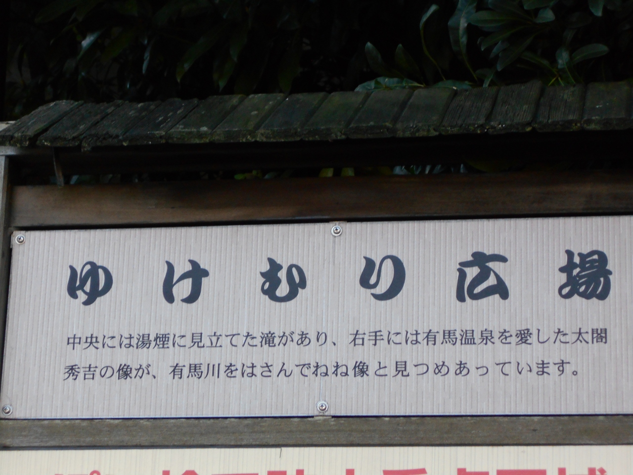 湯けむりに見立てた滝のある広場です。広場には有馬温泉を愛した太閤秀吉の像があり、有馬川を挟んでねね像と向かい合っています。素通りする観光客が多いようですが、立ち止まって滝をバックに記念撮影をしてみては如何ですか。