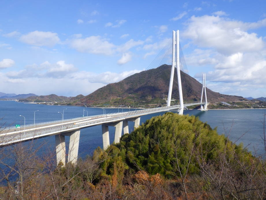 道の駅「多々羅しまなみ公園」から「多々羅大橋」が綺麗に見えました。道の駅「多々羅しまなみ公園」からちょっと歩いて山道を登っていくと「多々羅展望台」に到着しました。「多々羅展望台」からは目の前に「多々羅大橋」を見ることができて、とてもいい風景でした。