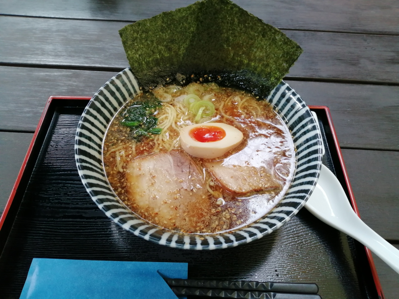 窟堂にあった不動明王像と同居している不思議な雰囲気の茶屋です。屋外テーブルでお不動様の隣で和風ラーメンをいただきました。濃厚なスープでほどよい香辛料の香りと薬味が素晴らしかったです。休日は混んでいることが多いので、早めの時間の訪問をおすすめします
