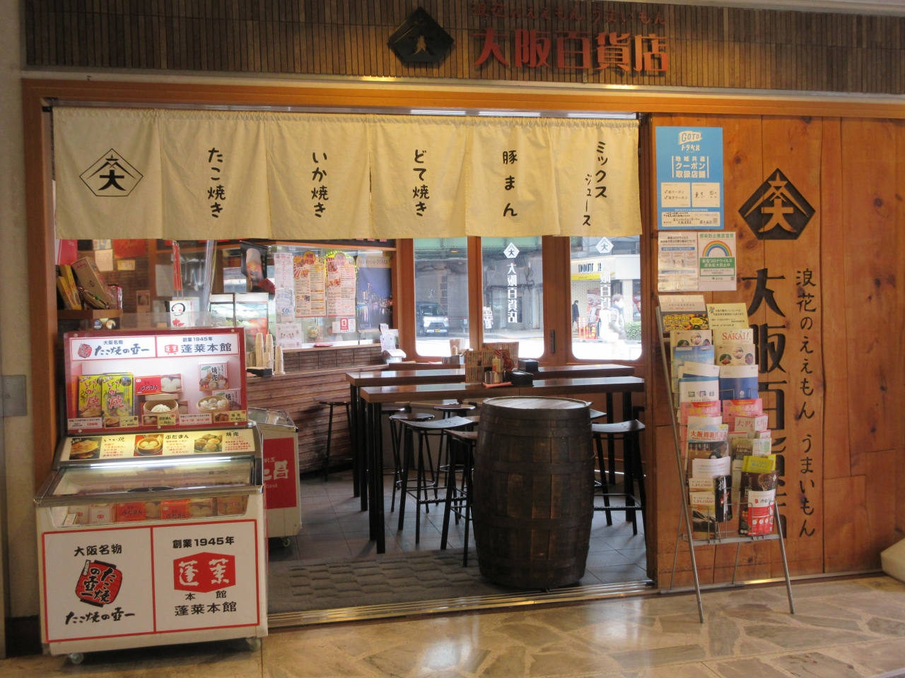 JR京浜東北線・有楽町駅中央口から1分ほどのところに建つ東京交通会館1階にある、大阪府のアンテナショップです。イートインコーナーでは食文化の街といわれる大阪の名物であるたこ焼きやイカ焼き、どて焼きなどを味わったりテイクアウトしたり、コロナ禍でなかなか訪れにくい大阪のソールフードを味わうことができました。店内ではたこ焼きやイカ焼きに使うソースや、ビリケングッズ、丼ものの形をした冷たいスイーツなどが販売され、大阪らしさを感じることができました。