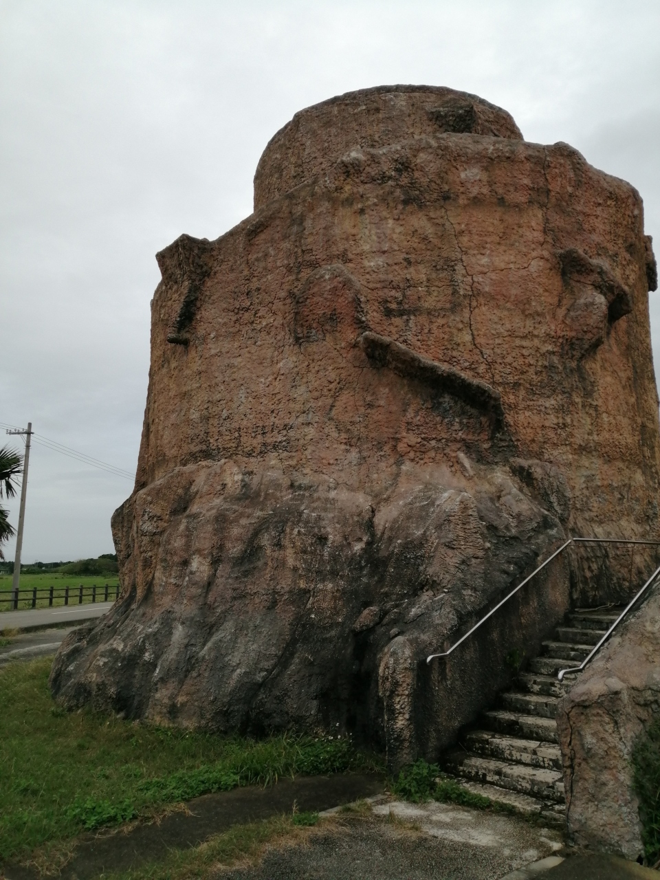黒島のちょうど中央に位置する展望台です。黒島中学校のとなりにあります。宿から自転車で訪れました。山が無くて平坦な黒島なので、それほど高くはありませんが周囲が良く見渡せます。建物はコンクリート製で趣はありません。隣の乾震堂の樹木が面白かったです。