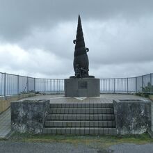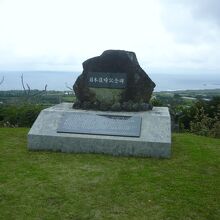 眺望より気になったのが、展望台にあった“町政50周年記念モニュメント”、巻貝と子供たちが空を見上げるユニークなモニュメントで、足元には少年とヤギがいて、巻貝にはセミの幼虫が付いていました。このモニュメントの意味するところはわかりませんでした。このほか、“日本復帰記念碑”などもありました。トイレと駐車場があります。