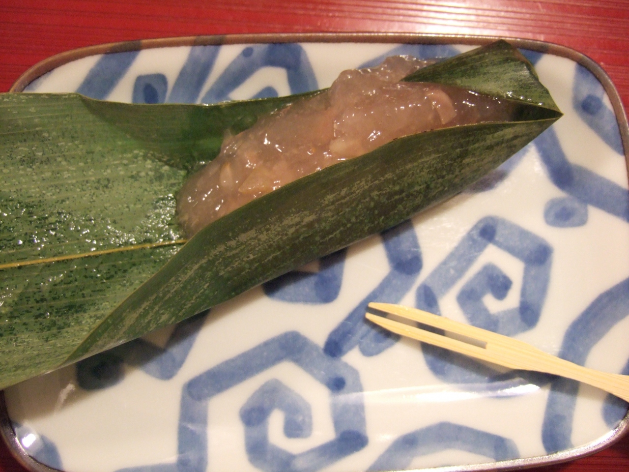 テイクアウトもできるわらび餅は種類が多くて迷いますが、笹に包まれたりんごのわらび餅をチョイス。細かく角切りにされたリンゴのサクサクした食感が、淡い甘さのプルプルわらび餅によく合い、初めて食べる美味しさでした。