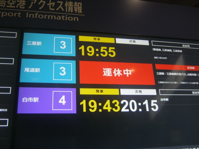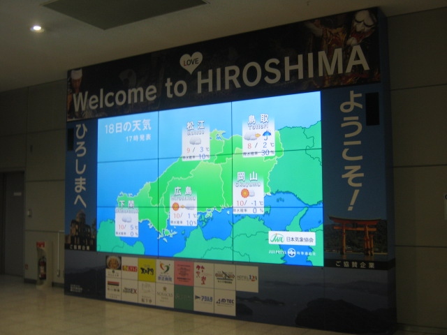 今回は約8年ぶりに広島空港を利用してみました。往路で到着した際には、到着ロビーのバス乗り場の案内が判りやすい電光表示に生まれ変わっていて、スムーズにバス乗り場まで移動することが出来ましたが、ガイダンスでの案内がなく、白市駅行きを一本見過ごしてしまいました。この点は注意が必要だと思います。到着ロビーにはコンビニも出来ていました。