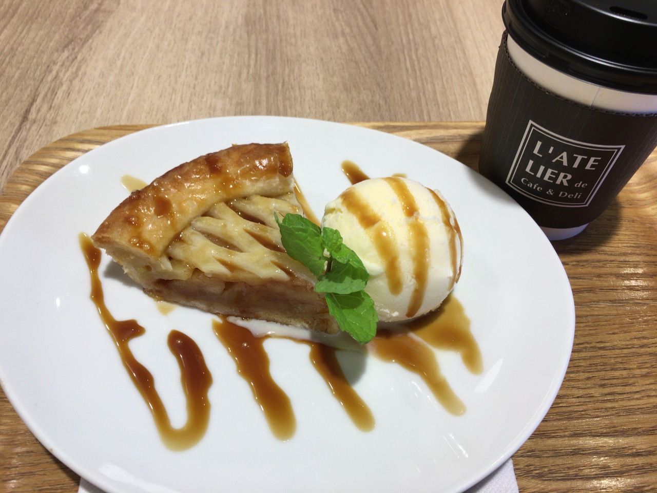 今回は休憩したかったのでアップルパイとホットコーヒーを注文しました。アップルパイはりんごがぎっしりと詰まっていて、見た目も可愛く盛り付けてあり、おかげで後半戦の買い物ももうひと踏ん張りできました。