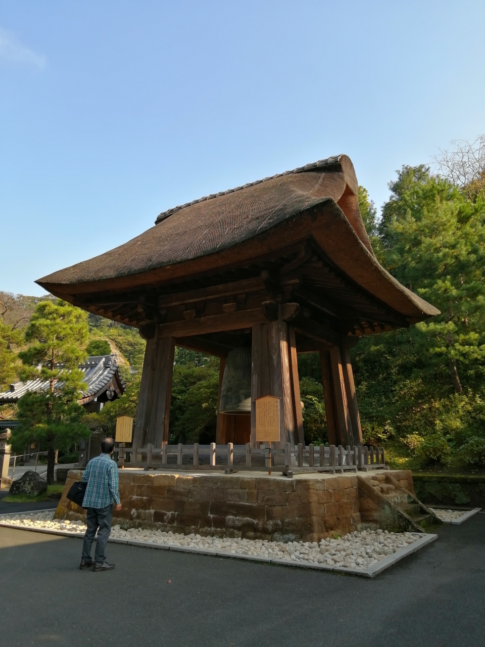建長寺の中にある国宝の鐘です。建長寺はとても敷地が広いのですが入って仏堂の手前の右手側にあります。