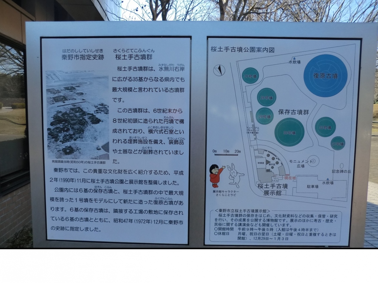 秦野市の指定史跡になっています、古墳や出土品が展示されてます、古墳は今の水無川のそばにあり、35基確認されたようですが、ここでは7基あるそうです。