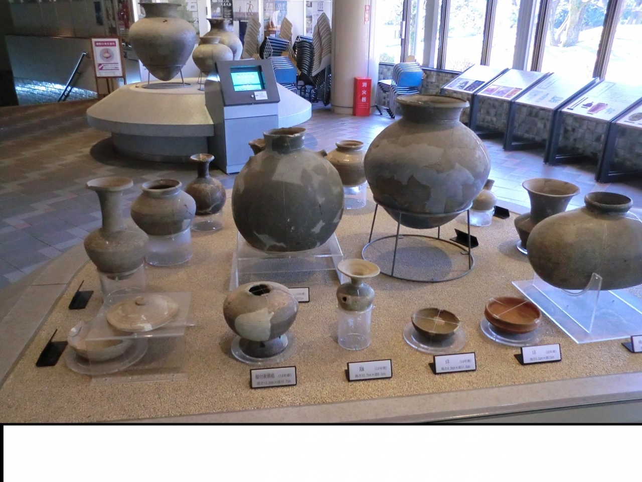 建物の中に出土品が展示されてますが壺(骨壺??)、狩りの道具、刀などがありました。