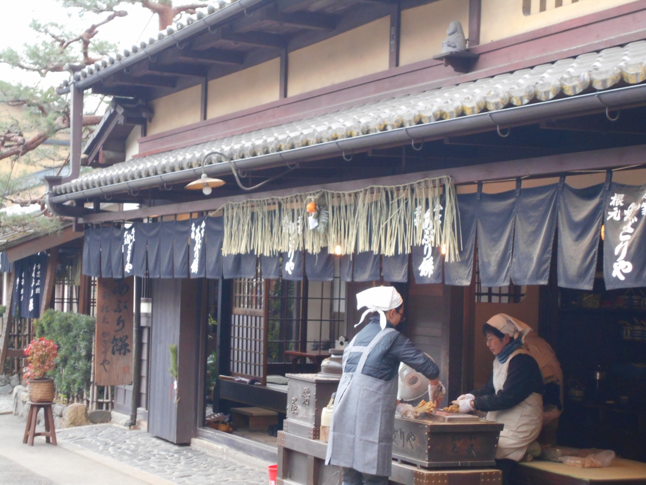 東山魁夷の日本画「あぶり餅」のモチーフとなった店です。この絵画は、一文字屋和輔に腰掛け、かざりやを描いているようです。こちらの店はあぶり餅の本家を名乗っています。創業400年ということで一文字屋和輔とは歴史が違います。餅はどちらも同じようですが、微妙に味が違うそうです。