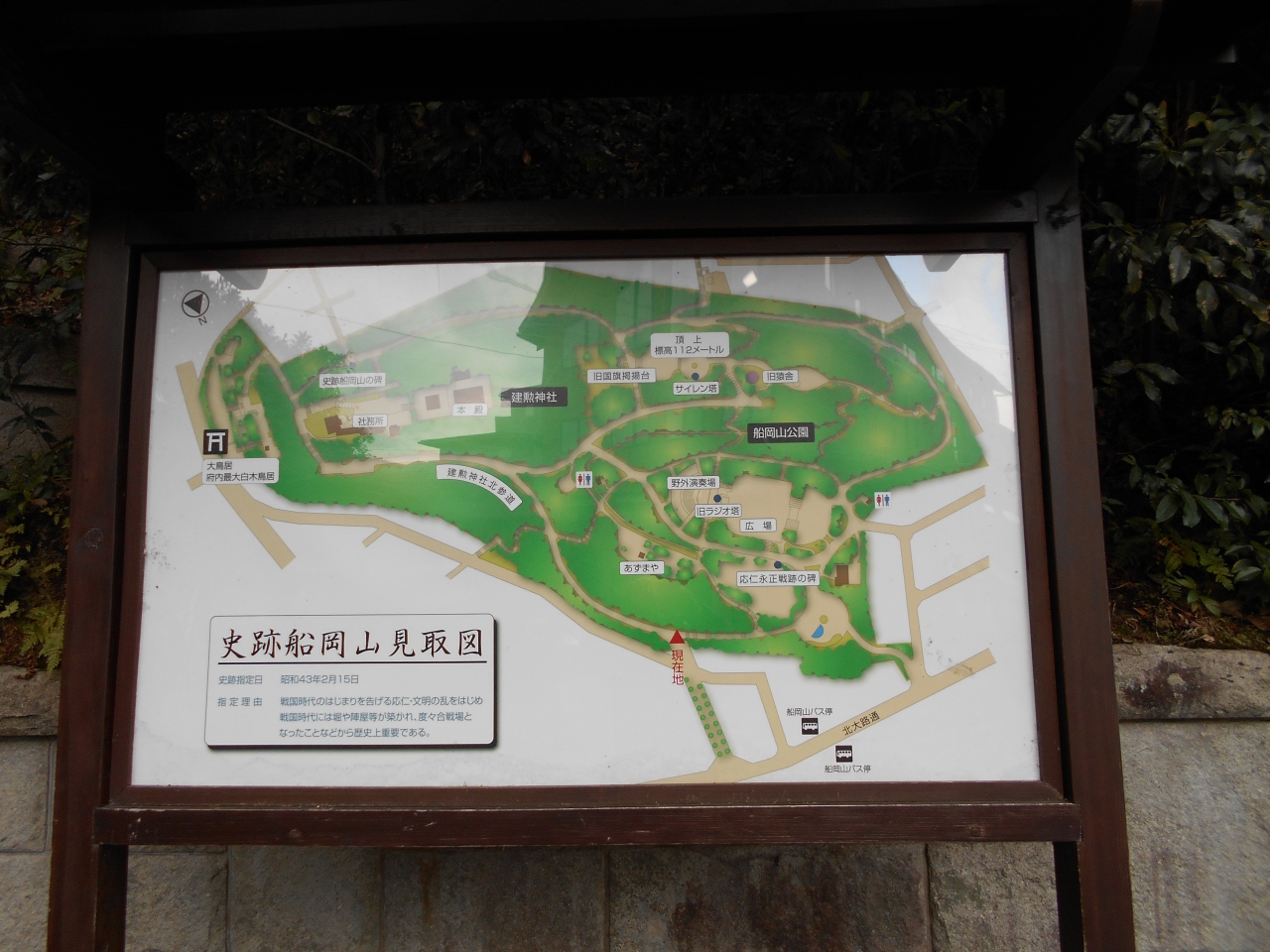 北大路から建勲神社へ向かう途中に立ち寄りました。標高112メートルで船の形のような丘であることが名前の由来のようです。広大な敷地には、ハギやツツジなど雑木林が続いています。遊歩道も整備されており、散歩には最適な公園です。五山送り火の定番スポットとしてまた、夜景スポットとしても有名です。